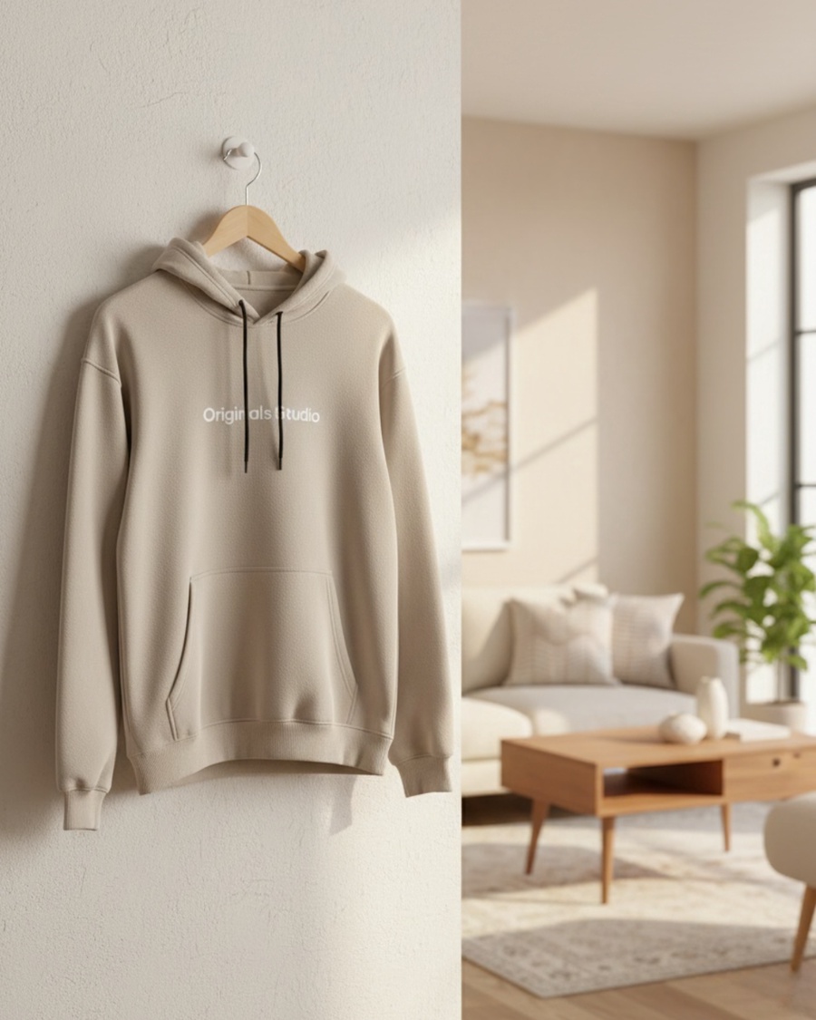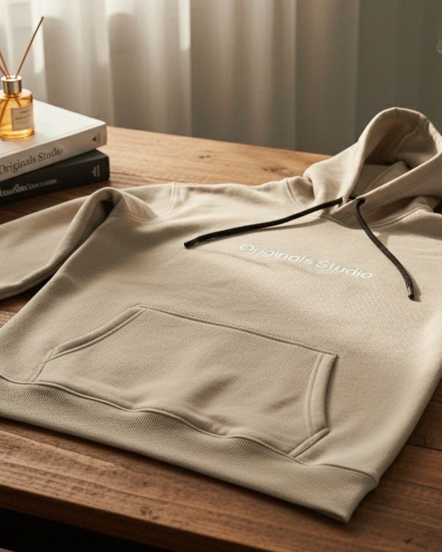 هودي رجالي مستورد مُبطَّن من الداخل بلون بيج أنيق ,ستايل شتوي مريح وجودة عالية