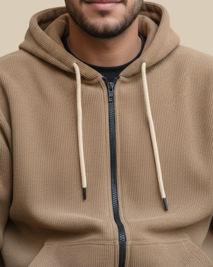 سويتشرت رجالي بسوستة أمامية بتصميم كاجوال عصري. خامة دافئة وناعمة مبطنة من الداخل تمنحك راحة ودفء مثاليين. مزود بجيوب أمامية عملية، مع قصّة مريحة تناسب مختلف الأجسام، ومناسب لفصل الشتاء والخريف.